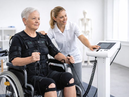Seine Hauptanwendung liegt nicht im klassischen Fitness- oder Kraftsport, sondern in der Rehabilitation. Nach Operationen, längerer Immobilisation oder bei stark geschwächter Muskulatur kann EMS helfen, Muskelaktivität frühzeitig zu fördern und den Wiedereinstieg in Bewegung zu unterstützen. Besonders bei neurologischen Einschränkungen oder nach langen Krankenhausaufenthalten kann diese Methode ergänzend eingesetzt werden.
