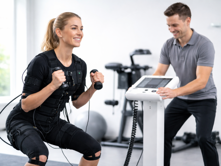 Für gesunde, leistungsfähige Personen ersetzt EMS kein strukturiertes Krafttraining. Muskelaufbau, Kraftentwicklung und sportliche Leistungssteigerung basieren primär auf mechanischer Belastung und progressivem Training. EMS kann in speziellen medizinischen Situationen sinnvoll sein – als therapeutische Ergänzung, nicht als Trainingsersatz.