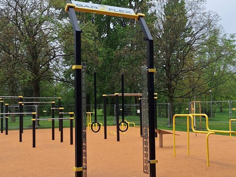 Der Park bietet eine umfangreiche Auswahl an Trainingsmöglichkeiten: verschiedene Klimmzugstangen in unterschiedlichen Höhen und Formen, parallele Barren, Monkey Bars, Ringe, Sprossenwand, Handstand-Wand sowie Elemente für Rudern, Knieheben und Floor-Übungen. Auch anspruchsvollere Skills wie Human Flag oder Ringübungen lassen sich hier trainieren. Die Anlage eignet sich sowohl für Einsteiger als auch für ambitionierte Calisthenics-Athleten.