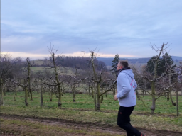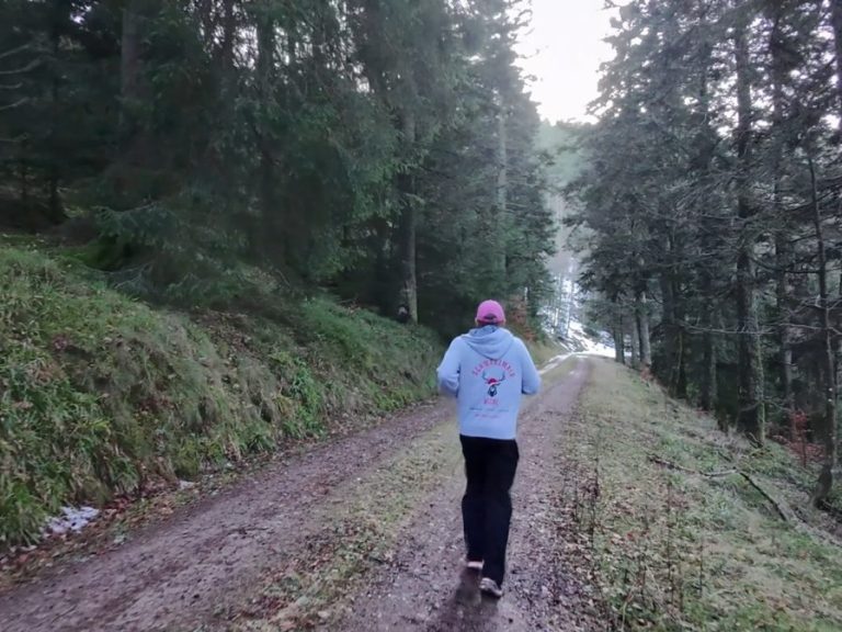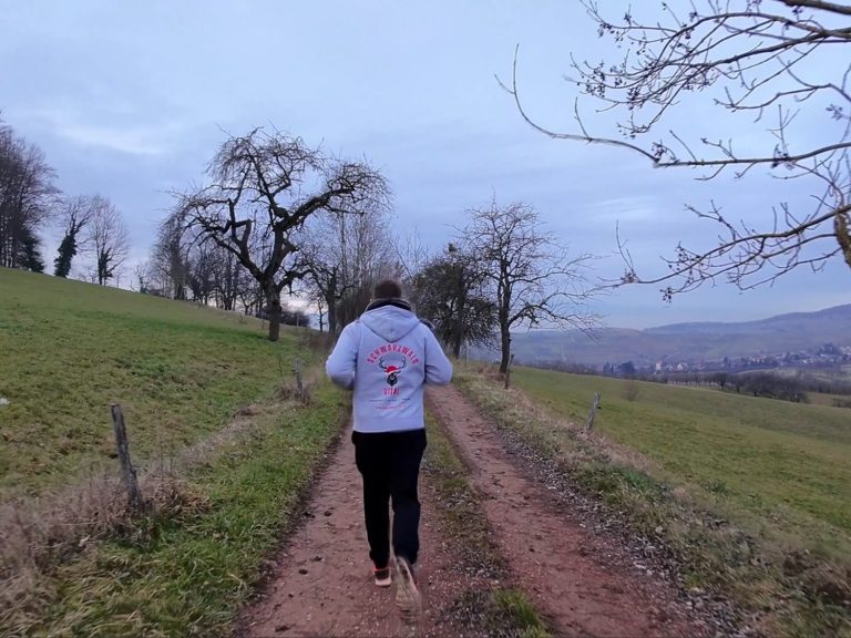 Dieser Lauf beginnt am Parkplatz St. Johannesbreite und führt über den Panoramaweg nach Osten – hinein in einen Schwarzwald, der sich heute offen und weit zeigt. Kein Nebel, keine Schleier. Stattdessen klare Sicht ins Tal und ein weiter Blick auf das kleine, idyllische Obereggenen, eingerahmt von Weinbergen und Kirschhainen. Der Weg verläuft zunächst offen, mit warmen Brauntönen unter den Füßen. Herbstlaub bedeckt den Boden, die Luft ist ruhig, fast mild. In der Ferne zeichnet sich der Feldberg leicht am Horizont ab, während der Blick immer wieder ins Tal fällt. Man sieht, wo man ist – und wohin man läuft. Nach den offenen Abschnitten taucht der Weg wieder in den Wald ein. Die Geräusche werden gedämpfter, das Licht weicher. Zwischen den Bäumen huscht mit etwas Glück ein Hirsch vorbei oder ein Eichhörnchen kreuzt den Pfad. Der Lauf bleibt ruhig, fließend, getragen von der Umgebung – herbstlich schön, klar und geerdet.